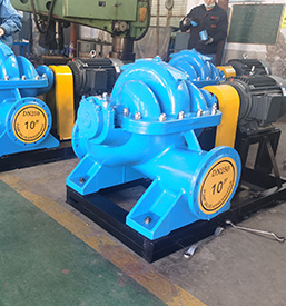 【中開泵運行的工作原理】葉輪安裝在泵殼內,并緊固在泵軸上,泵軸由電機直接帶動。泵殼中間有一液體吸入與吸入管連接。