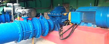 【中開泵運行的工作原理】葉輪安裝在泵殼內,并緊固在泵軸上,泵軸由電機直接帶動。泵殼中間有一液體吸入與吸入管連接。