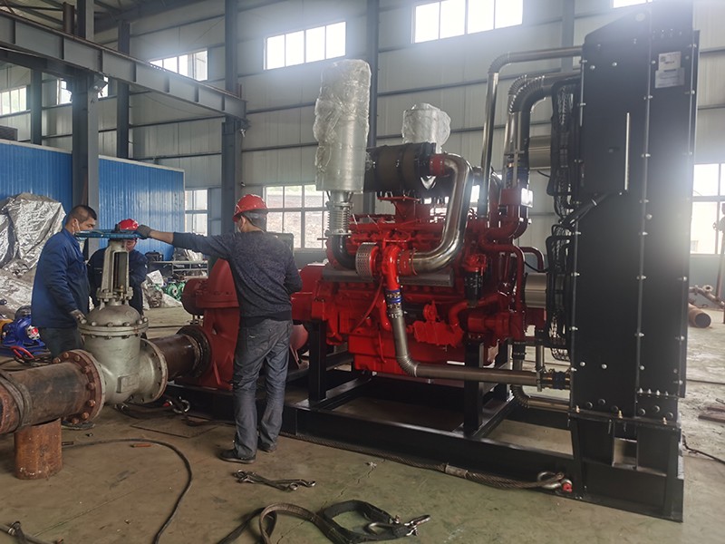 通常人們會按照幾寸來為水泵命名例如:4寸水泵也就是指的水泵的進出口口徑是4寸(內徑100mm)、6寸水泵也就是指的水泵的進出口口徑是6寸(內徑150mm)、8寸水泵也就是指的水泵的進出口口徑是8寸(內徑200mm),10寸柴油機水泵指的是進出口采用10寸的管道,這幾款之中常用到的屬于10寸柴油機水泵、它流量能達到600m3/h,揚程根據需求可以到80米,通常運用多的一款屬于流量200m3/h揚程22米的一款6寸柴油機水泵,該參數對應柴油機功率在33KW轉速1500r/min,泵體材質可以采用HT250材質(泵體重量148kg)、也可以采用優良合金鋁材質(采用合金鋁材質泵體重量要減輕90kg左右、實際重量為55kg),過流部件一律采用優良不銹鋼制作而成,該款6寸柴油機水泵優點就是無堵塞效果很好,并且經過我們工程師精心設計大膽創新之后改變了以往此類自吸泵自吸能力低的弊端,自吸高度8米工況下不采用任何輔助系統引流、只要先把泵體里面灌滿水之后在自吸高度8米的工況只需1-2分鐘以內就能輕松的把水給吸到泵體里面來排走。